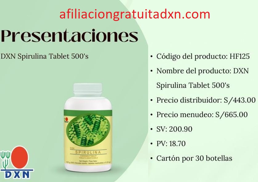 Una maravillosa y muy muy grata noticia para los que integramos la Familia Mundial en DXN Perú, a sólo unos días de su Lanzamiento Oficial ya están las expectativas por las nubes, debido a que desde un buen tiempito atrás se venía esperando el ingreso oficial de la Spirulina Tabletas DXN, considerada por la Nasa y otras organizaciones mundiales como «El Alimento Del Futuro», y en DXN con la Más Alta Nutrición y la más Alta Calidad, totalmente asequible para cada hogar peruano.